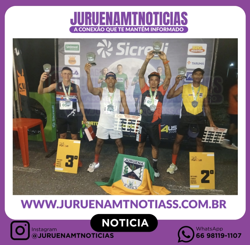 Ao todo, a equipe de Juruena conquistou quatro premiações na corrida de rua de 5 km, reforçando o potencial dos atletas locais em eventos regionais e levando o nome do município ao pódio.