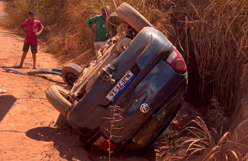Motorista perde o controle e capota veículo na estrada sentido a prainha do Rio Juruena-MT