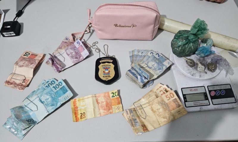 Na abordagem, foram encontrados entorpecentes, balanças de precisão e uma quantia em dinheiro, todos compatíveis com a prática do tráfico de drogas. O material foi apreendido e levado à Delegacia de Polícia, onde serão tomadas as medidas legais cabíveis.