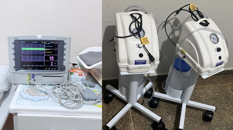 Além do tococardiografo, o município também recebeu um aspirador de secreções, aparelho médico portátil essencial para a remoção de secreções das vias aéreas de pessoas que não conseguem expeli-las por conta própria. Esse equipamento é fundamental no suporte a pacientes com dificuldades respiratórias ou em situações de emergência.