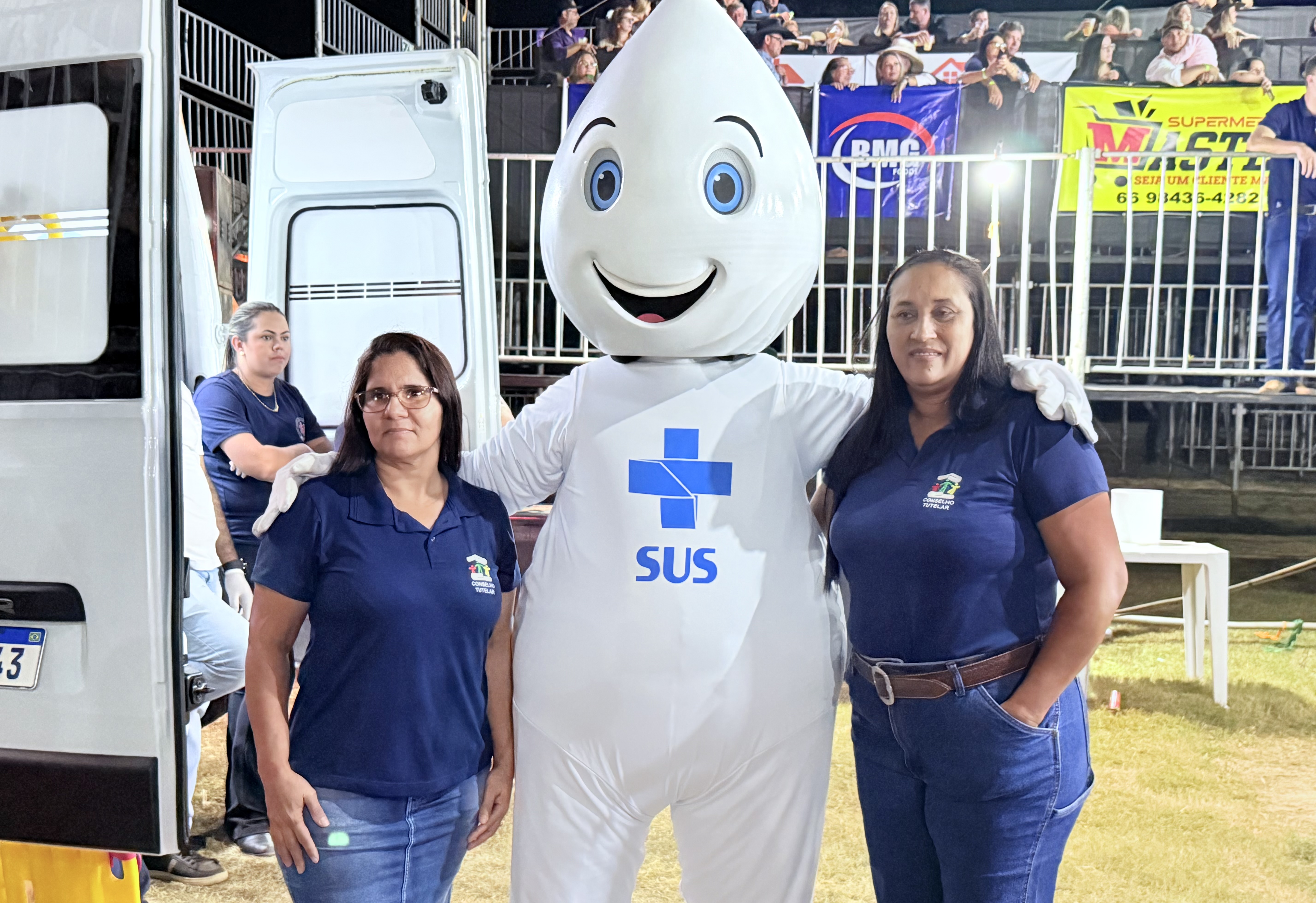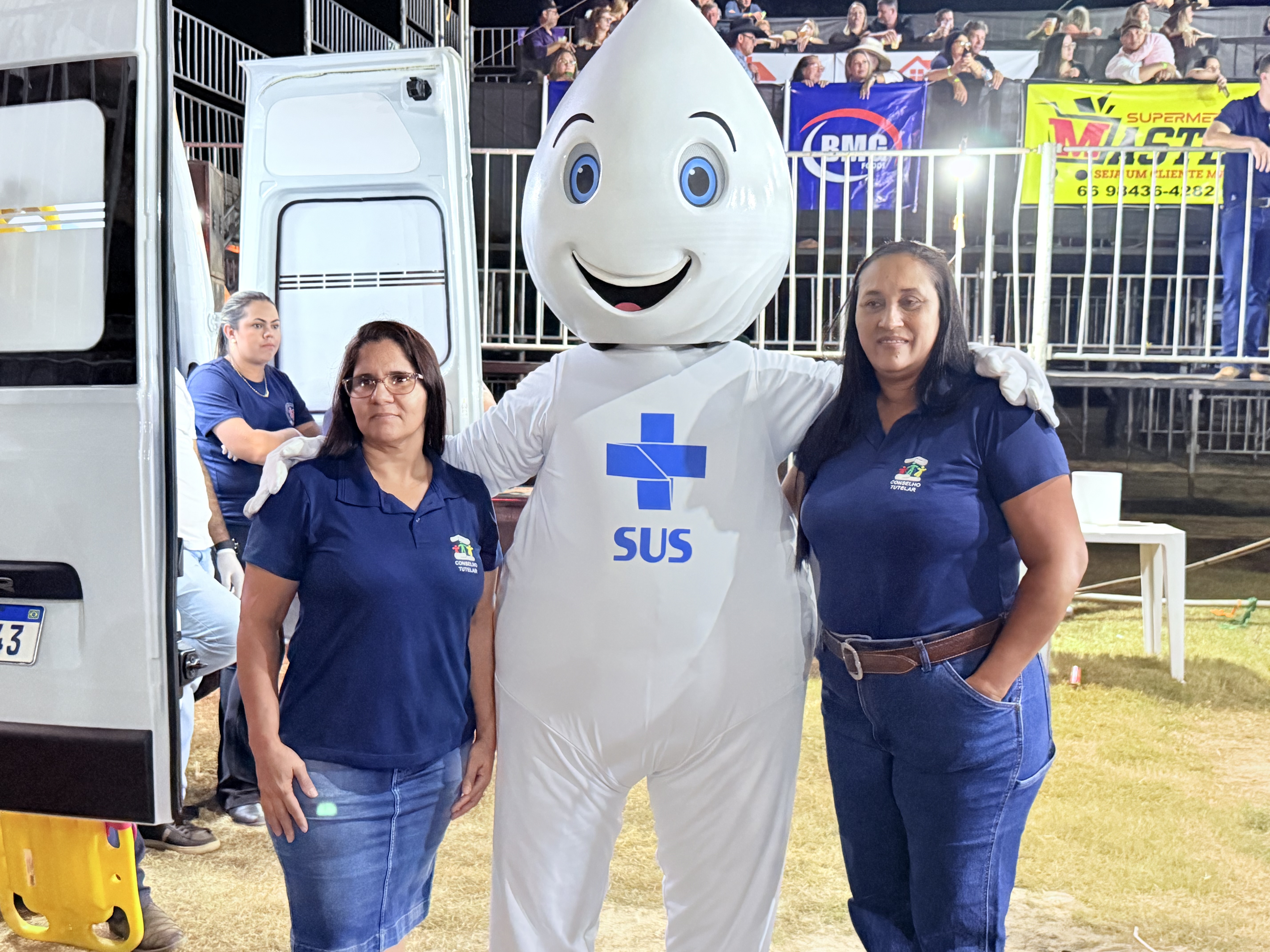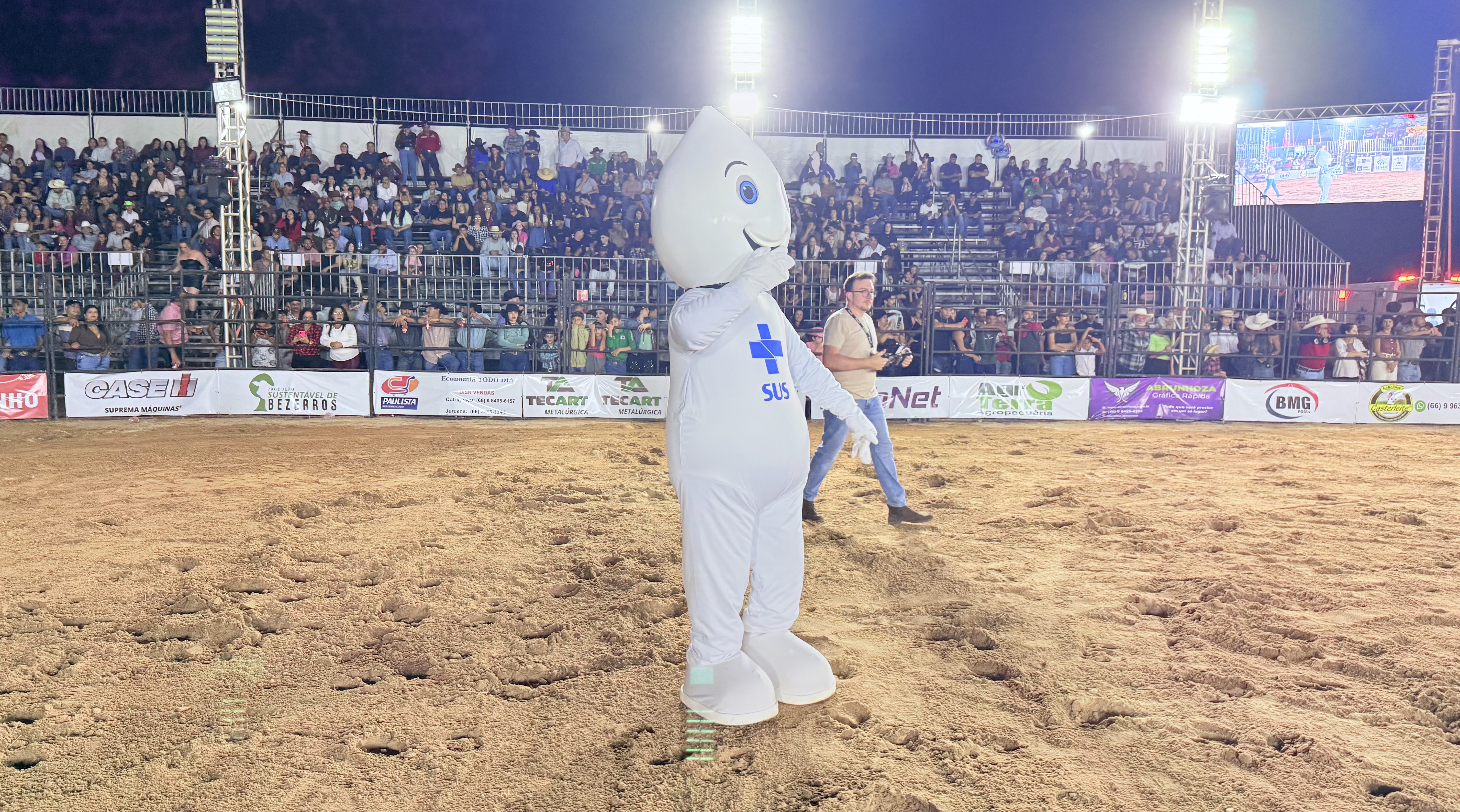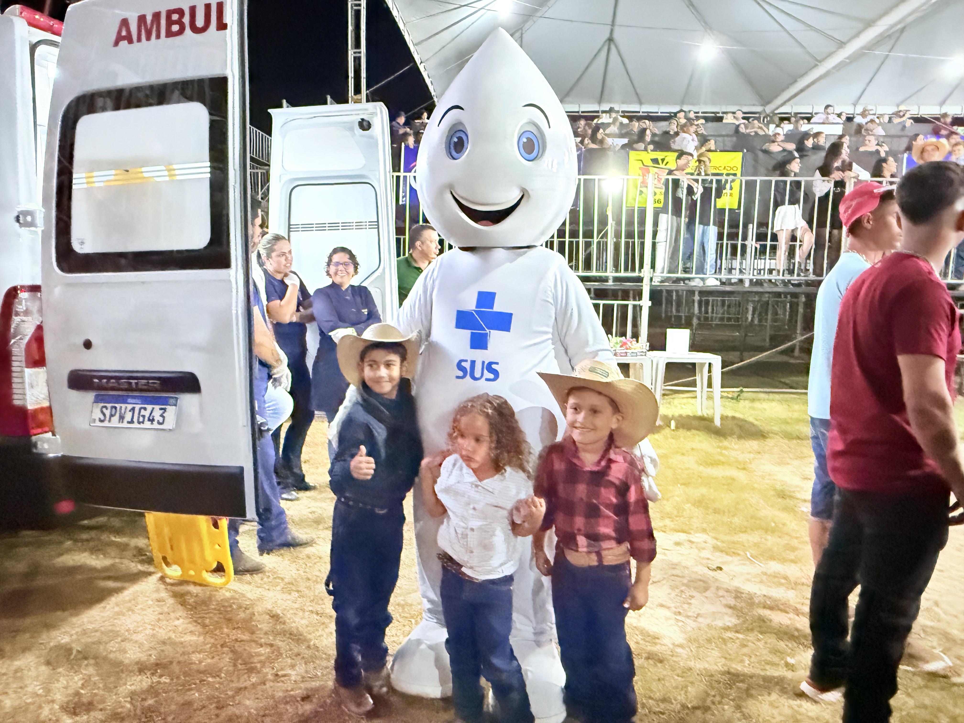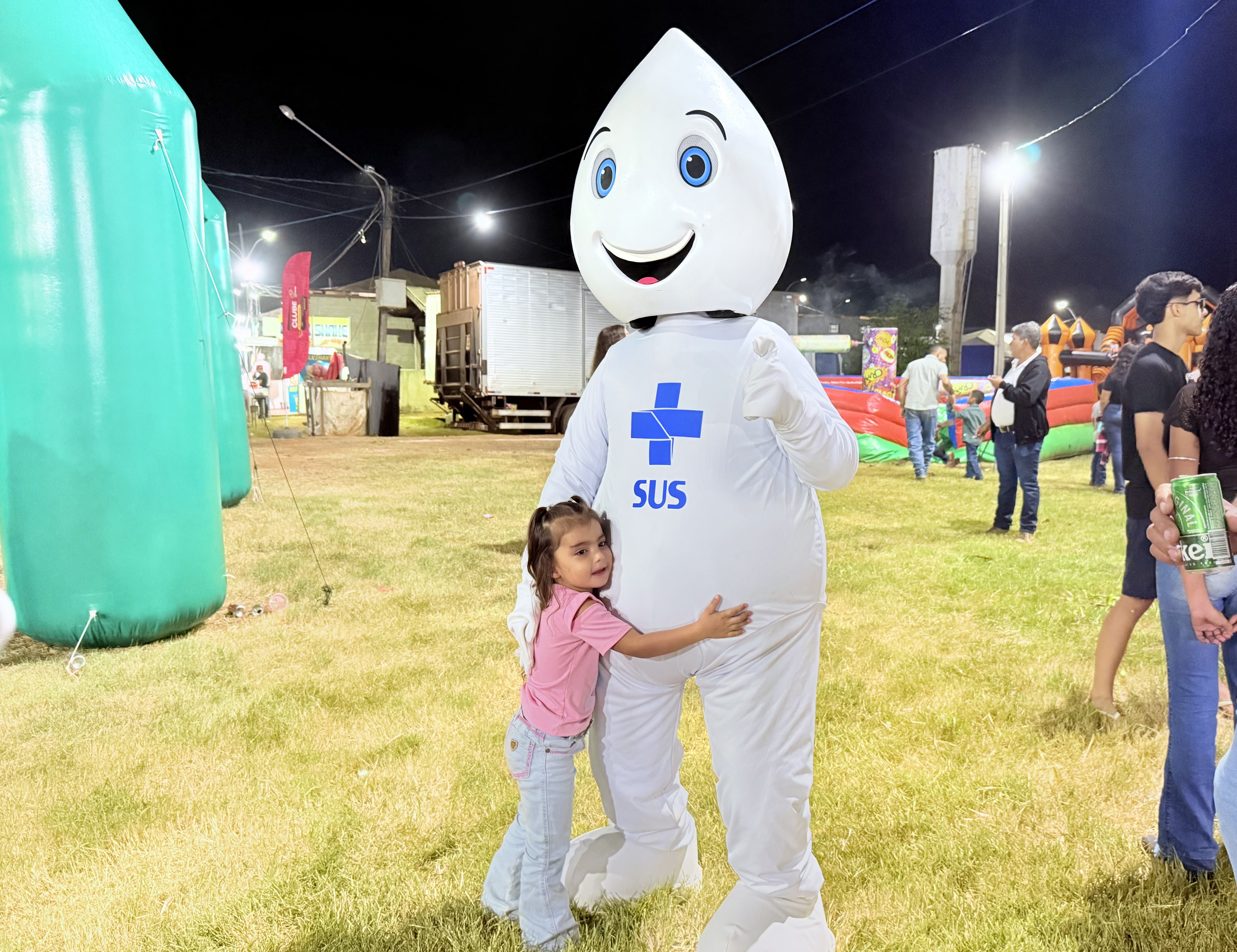 Na noite deste sábado, dia 19 de julho, o simpático personagem Zé Gotinha marcou presença na 29ª EXPOJUR, em Juruena, animando o público e reforçando a importância da vacinação para a saúde da população.